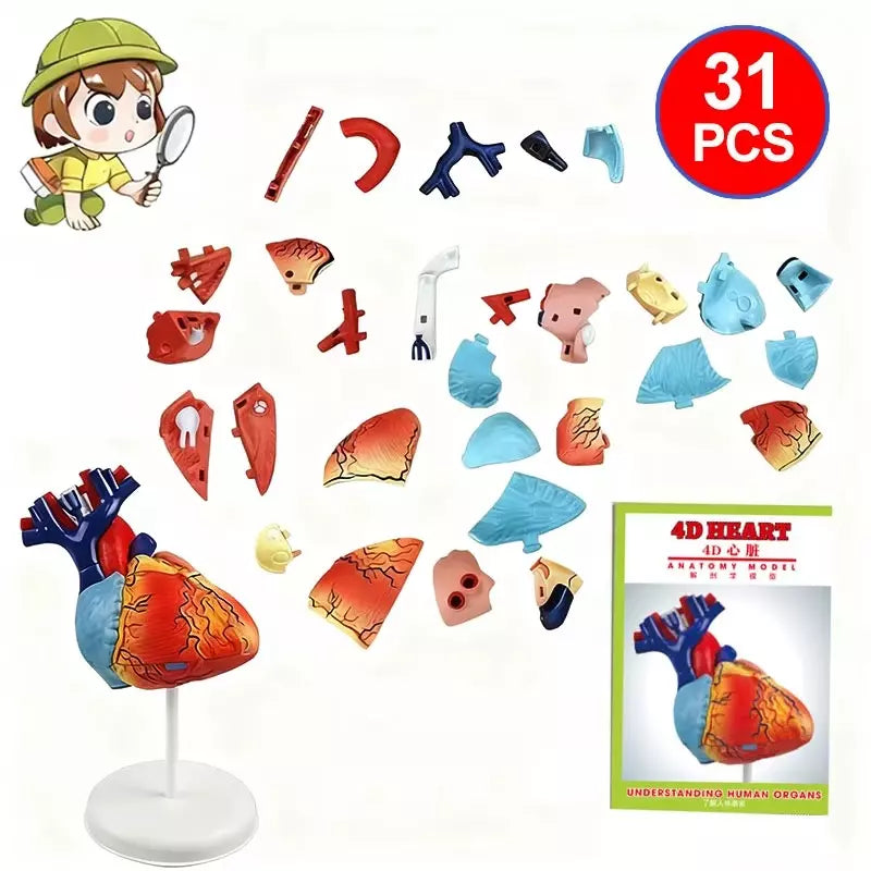 This highly detailed model features 31 removable pieces , including atria, ventricles, valves, arteries, veins, and internal structures — all designed with impressive realism to turn anatomy learning into a hands-on, engaging experience.