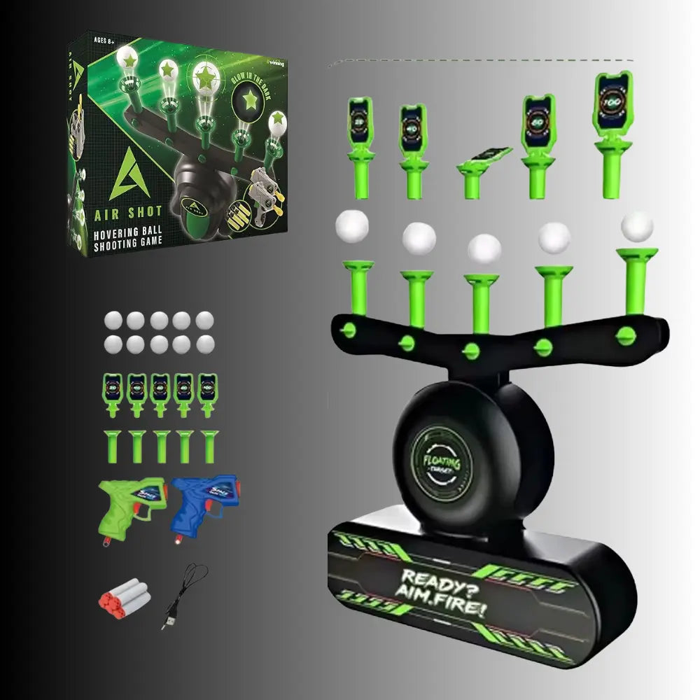 With its floating levitating targets and advanced air-lift technology , all you need to do is turn it on and let the action begin. Within seconds, the targets rise, hover, and challenge your aim like no other toy can. Only those with quick reflexes, sharp focus, and champion-level accuracy will come out on top! 💨🔥